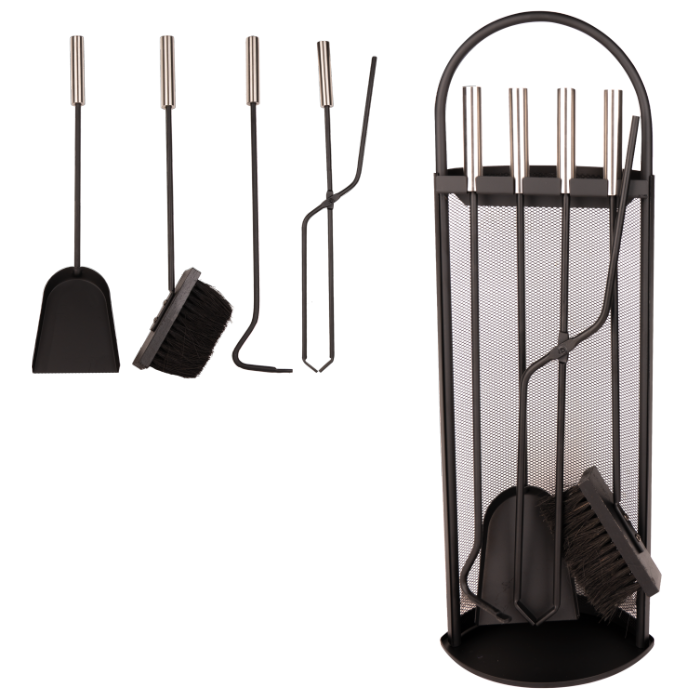 Ανακαλύψτε την κομψότητα και τη λειτουργικότητα με το Σετ εργαλείων τζακιού με βάση, 4 τμχ.! Το σετ είναι ο ιδανικός σύντροφος για να ολοκληρώσετε το τζάκι σας και να προσθέσετε μια πινελιά στυλ και τάξης στον χώρο. Περιλαμβάνοντας τέσσερα βασικά τεμάχια, το σετ διαθέτει στιβαρή βάση και τέσσερα απαραίτητα εργαλεία για τη συντήρηση και τον χειρισμό της φωτιάς στο τζάκι. Η βάση, με τον κομψό σχεδιασμό της, όχι μόνο προσθέτει μια εκλεπτυσμένη νότα στον χώρο σας, αλλά προσφέρει και μια πρακτική λύση οργάνωσης για τα εργαλεία σας. Κατασκευασμένα για αντοχή και ευκολία χρήσης, τα τεμάχια του σετ είναι απαραίτητα για την καθημερινή συντήρηση του τζακιού σας. Προσθέστε επιπλέον στυλ και τάξη στον χώρο σας με το Σετ εργαλείων τζακιού με βάση, 4 τμχ. – η πρακτική και κομψή επιλογή για τους λάτρεις των τζακιών. Το πακέτο περιλαμβάνει: 1x Βούρτσα 1x Τσιμπίδα για κάρβουνα 1x Φτυάρι στάχτης από σφυρήλατο σίδερο 1x Σκαλιστήρι από σίδερο