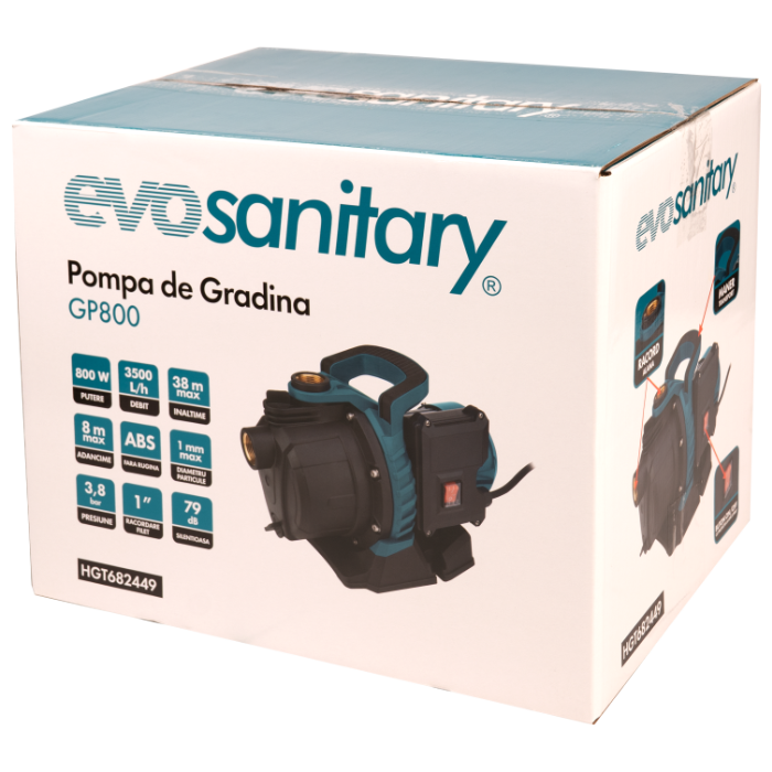 Με ισχύ 800 W, η αντλία μπορεί να αντλεί νερό από βάθος έως 8 m και να το προωθεί σε μέγιστο ύψος 38 m, εξασφαλίζοντας μέγιστη παροχή 58 L/min.