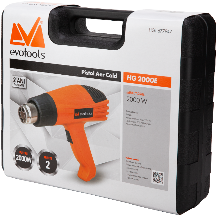Το πιστόλι θερμού αέρα HG 2000E EPTO® ανήκει στη γκάμα προϊόντων EvoTools®, μια μάρκα για ερασιτέχνες μάστορες. Τα προϊόντα αυτής της σειράς είναι υψηλής ποιότητας και προορίζονται για ημιεπαγγελματική χρήση.